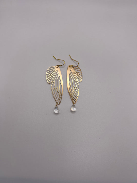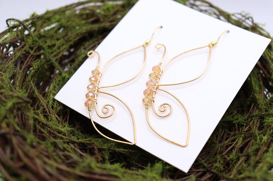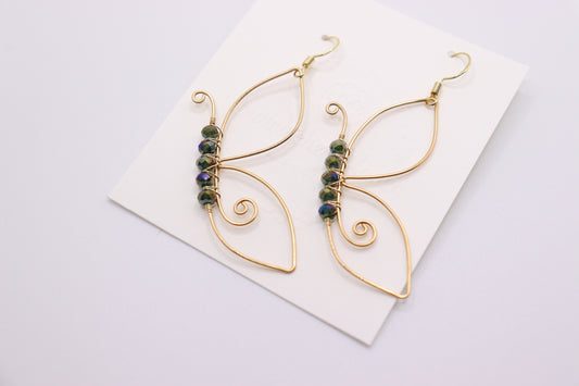 Butterfly wing earrings, gold wing earrings, boho jewelry, wire wrapped drop earrings, dangle earrings, gift, mothers day