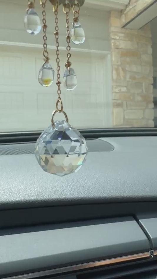 Car charm sun catcher rear view mirror accessory crystal rain cloud decor car crystal prism hanging keychain cute car gift suncatcher